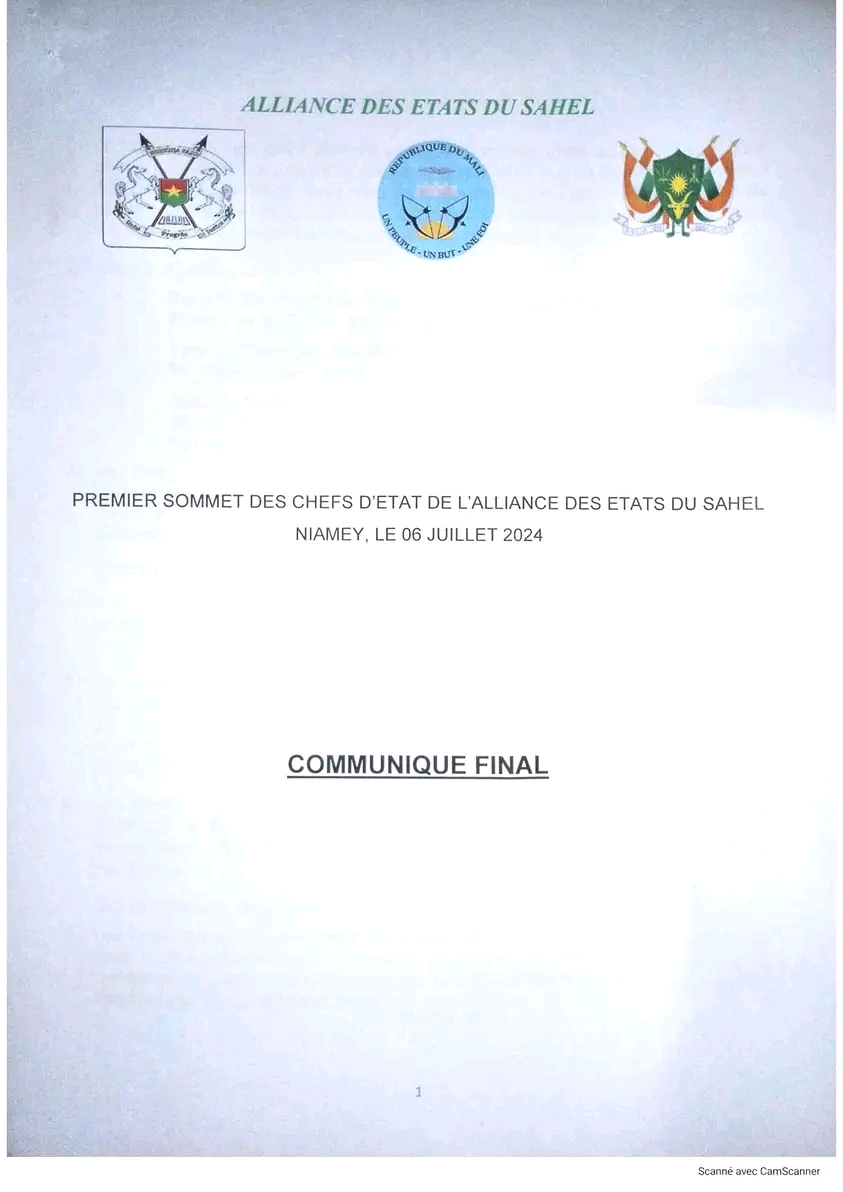 ALLIANCE DES ETATS DU SAHEL : DECLARATION DE NIAMEY