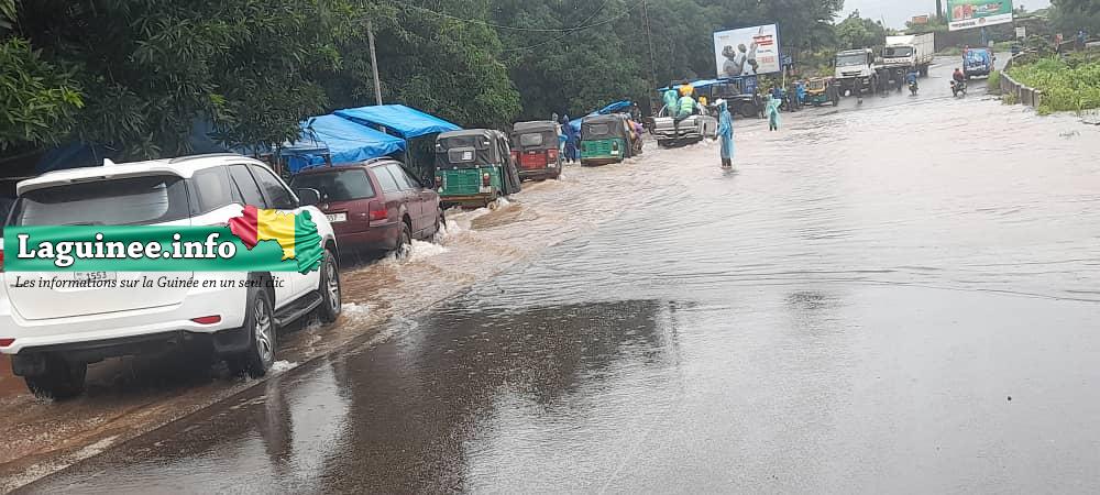 À Conakry, les récentes pluies diluviennes ont transformé le lac de Sonfonia en un véritable obstacle pour les habitants. Les eaux débordantes partiellement la route principale, empêchant les populations de circuler paisiblement.