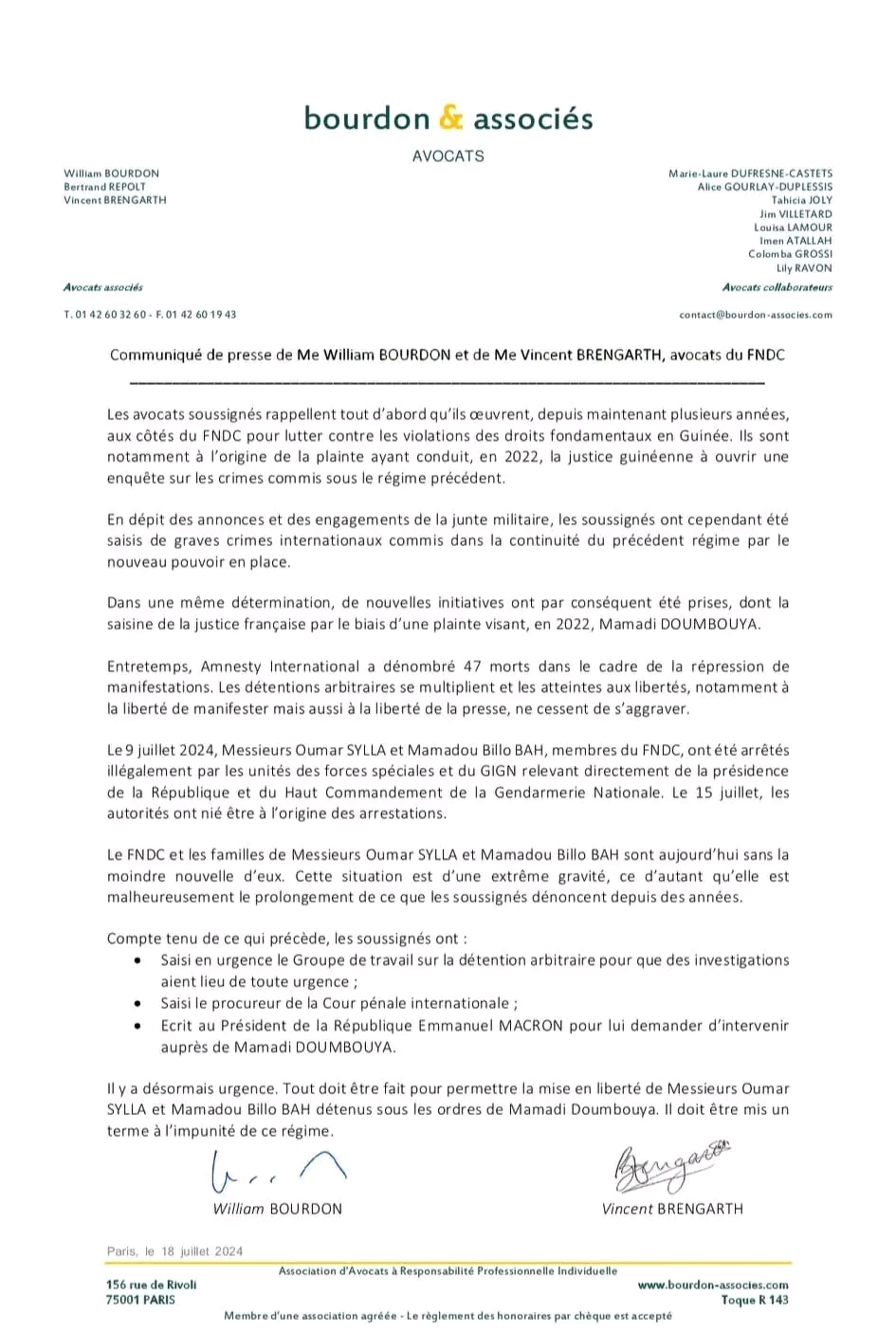 Se connecter Bienvenue ! Connectez-vous à votre compte : votre nom d'utilisateur votre mot de passe Forgot your password? Get help Récupération de mot de passe Récupérer votre mot de passe votre email Un mot de passe vous sera envoyé par email. ActualitéJustice Affaire Foniké Menguè : les avocats du FNDC saisissent la CPI Publié par laguinee.info 18 juillet 2024 Share FacebookTwitterPinterestWhatsAppLinkedinEmailPrintViber À LIRE AUSSI Desserte en courant électrique : le Général Mamadi Doumbouya tape du poing sur la table ! (Confidences) 4 juillet 2024 Filets fatigués, poissons rares: les pêcheurs de Koba dans l’impasse ! 20 avril 2024 Koba: immersion dans l’univers des producteurs artisanaux du sel 19 avril 2024 Le gombo, le trésor vert de la sous-préfecture de Koba ! 18 avril 2024 laguinee.infohttps://laguinee.info Share FacebookTwitterPinterestWhatsAppLinkedinEmailPrintViber Article précédentEuro 2024: Toni Kroos revient sur l’élimination de l’Allemagne et critique l’arbitrageArticle suivantPolitique : Le ministre Ibrahim Kalil Condé restitue les évaluations des partis politiques en Guinée - Advertisement - ECHO DE NOS RÉGIONS Retour de mission mouvementé : frayeur pour Elhadj Fodé Madjaye Magassouba après un accident à Tapiyoka 23 février 2026 Kindia : un incendie ravage plusieurs hectares d’ananas, un exploitant agricole lance un appel à l’aide 22 février 2026 N’Zérékoré : une famille dévastée par un incendie en pleine saison sèche appel au secours 20 février 2026 « Quand je suis arrivé, j’ai entendu des femmes pleurer… il était dans un état vraiment critique » : témoignage sur la mort d’un... 19 février 2026 Kissidougou : le sac de ciment atteint 120 000 GNF dans les magasins 19 février 2026