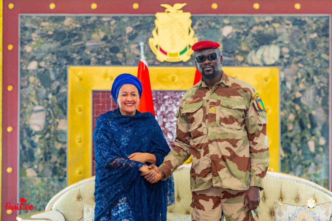 Le point d’orgue de la dernière journée du séjour à Conakry de la Vice-Secrétaire Générale de l’ONU a été sa rencontre avec le Président de la République, Chef de l’État, Chef Suprême des armées, le Général Mamadi Doumbouya. Lors de ses échanges avec la Vice-Secrétaire Générale de l’ONU, le Président de la République a mis en avant les trois (3) axes prioritaires de la transition qu’il a définis à savoir : l’axe social, l’axe économique et l’axe politique. Après s’être entretenue avec le Chef de l’État, Madame Amina Jane Mohammed a salué l’esprit qui a caractérisé les échanges. La Vice-Secrétaire Générale a salué la volonté des autorités guinéennes à s’investir dans l’atteinte des objectifs de développement durable. Notamment l’éradication de la pauvreté, le renforcement des institutions, l’égalité entre les sexes, l’autorisation des femmes, etc…