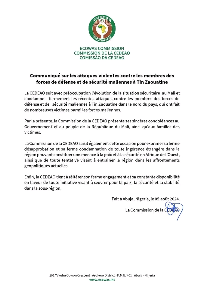 Se connecter Bienvenue ! Connectez-vous à votre compte : votre nom d'utilisateur votre mot de passe Forgot your password? Get help Récupération de mot de passe Récupérer votre mot de passe votre email Un mot de passe vous sera envoyé par email. Actualité Mali: La CEDEAO condamne les attaques contre les membres des forces de défense et de sécurité à Tin Zaouatine Publié par laguinee.info 5 août 2024 Share FacebookTwitterPinterestWhatsAppLinkedinEmailPrintViber À LIRE AUSSI Desserte en courant électrique : le Général Mamadi Doumbouya tape du poing sur la table ! (Confidences) 4 juillet 2024 Filets fatigués, poissons rares: les pêcheurs de Koba dans l’impasse ! 20 avril 2024 Koba: immersion dans l’univers des producteurs artisanaux du sel 19 avril 2024 Le gombo, le trésor vert de la sous-préfecture de Koba ! 18 avril 2024 laguinee.infohttps://laguinee.info Share FacebookTwitterPinterestWhatsAppLinkedinEmailPrintViber Article précédentGuinée : Où sont Foniké Menguè et Billo Bah ? La communauté internationale exige des réponsesArticle suivantPourquoi le départ de Kaba Diawara, depuis près de dix ans et la mise en place d’un comité directoire pour la gestion du syli A ? - Advertisement - ECHO DE NOS RÉGIONS Retour de mission mouvementé : frayeur pour Elhadj Fodé Madjaye Magassouba après un accident à Tapiyoka 23 février 2026 Kindia : un incendie ravage plusieurs hectares d’ananas, un exploitant agricole lance un appel à l’aide 22 février 2026 N’Zérékoré : une famille dévastée par un incendie en pleine saison sèche appel au secours 20 février 2026 « Quand je suis arrivé, j’ai entendu des femmes pleurer… il était dans un état vraiment critique » : témoignage sur la mort d’un... 19 février 2026 Kissidougou : le sac de ciment atteint 120 000 GNF dans les magasins 19 février 2026