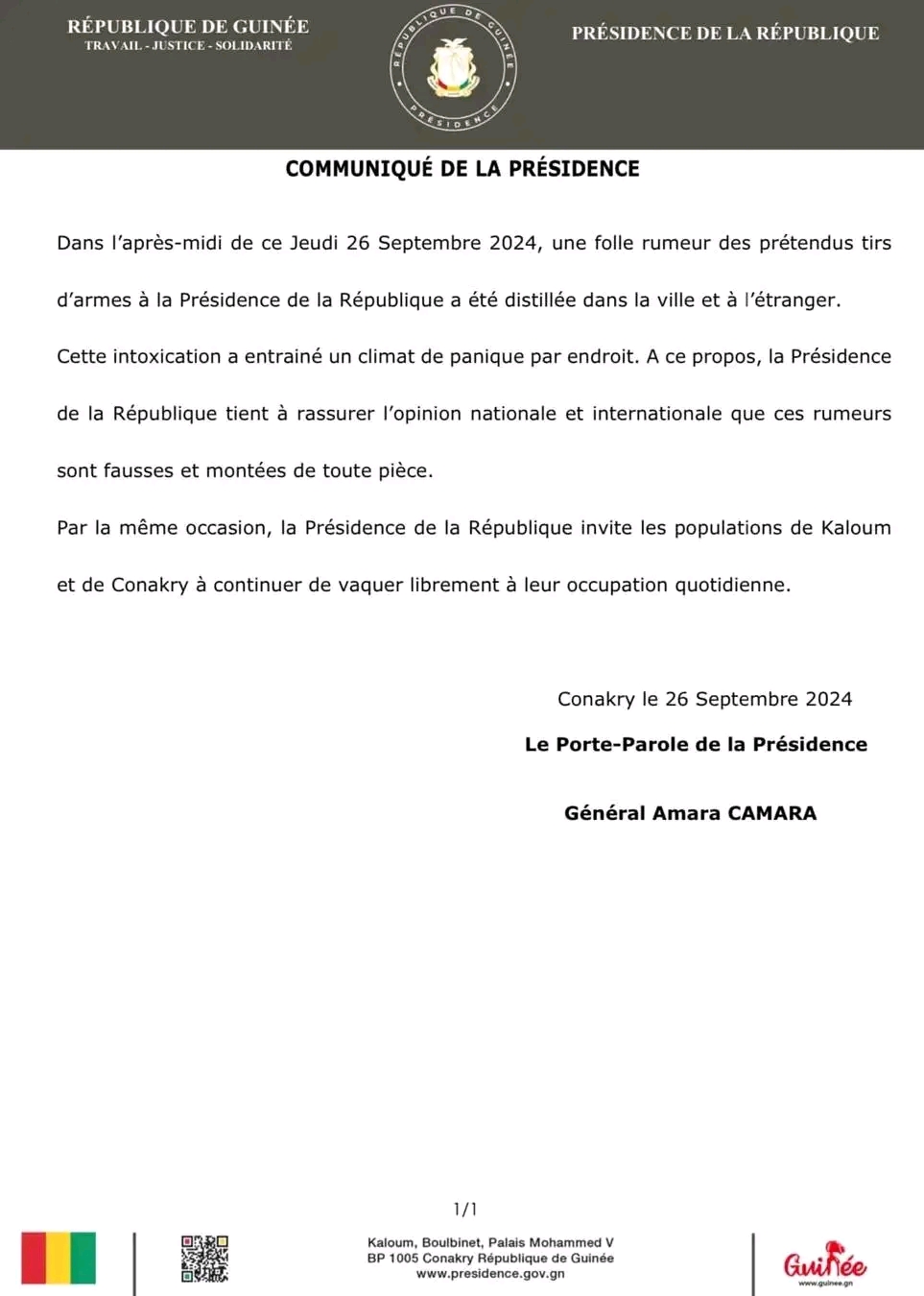 À travers un communiqué publié dans la soirée, la Présidence de la République a fait savoir qu’il s’agit d’une rumeur. La population a été appelée au calme et à la retenue, sauf que beaucoup de personnes doutent de l’authenticité de ce communiqué car, n’étant ni signé ni cacheté.