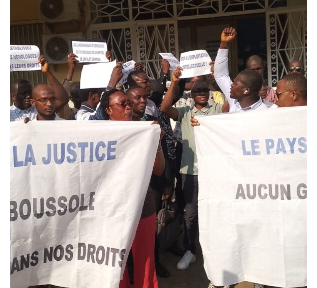 Sur leurs pancartes brandies comme des étendards, des slogans incisifs : « À bas l’exploitation intellectuelle ! » ou encore « Rétablissez les enseignants-chercheurs dans leurs droits ! » Une révolte teintée d’amertume face à un système qu’ils jugent injuste, eux qui, après 6 à 10 ans de loyaux services dans les amphithéâtres, se voient écartés du processus de recrutement.