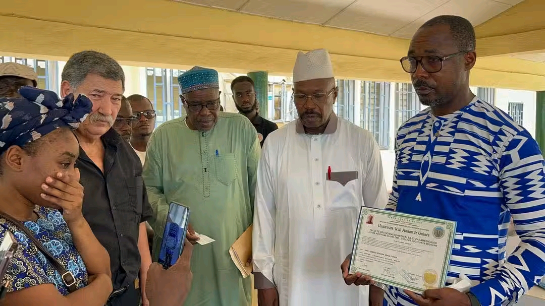 En reconnaissance du travail accompli par la défunte, l’Université Kofi Annan de Guinée a remis son diplôme de doctorat à ses parents, à titre posthume. Un geste fort qui témoigne du mérite et du dévouement de la jeune femme.