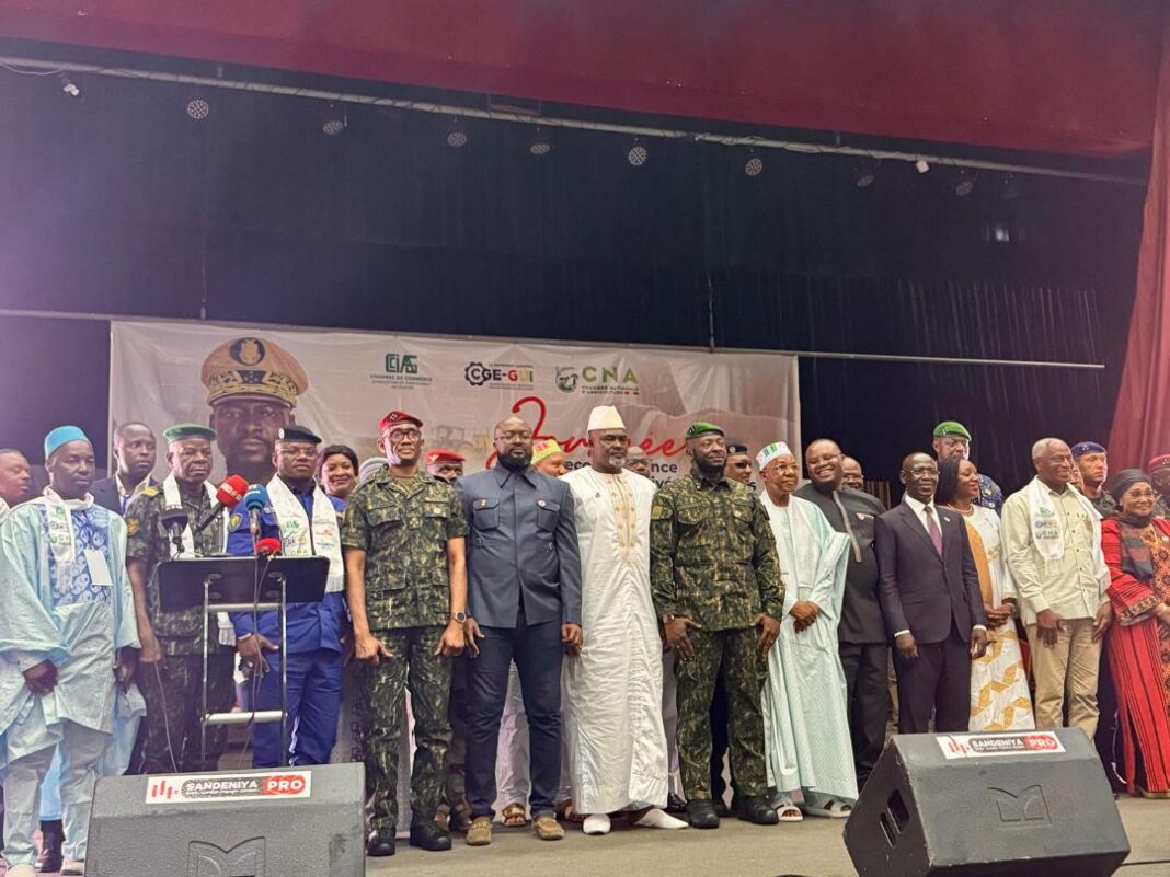 Le Palais du peuple a servi de cadre ce vendredi à la Journée de reconnaissance aux acquis du CNRD, une cérémonie d’envergure organisée par les principaux acteurs du secteur privé guinéen. Cette initiative, portée par la Chambre de Commerce, d’Industrie et d’Artisanat de Guinée (CCIAG), la Chambre Nationale d’Agriculture (CNA) et le Conseil Guinéen des Entreprises (CGE-GUI), visait à exprimer la gratitude du secteur économique à l’endroit du chef de l’État, le Colonel Mamadi Doumbouya. La rencontre a été présidée par le Premier ministre, M. Bah Oury.