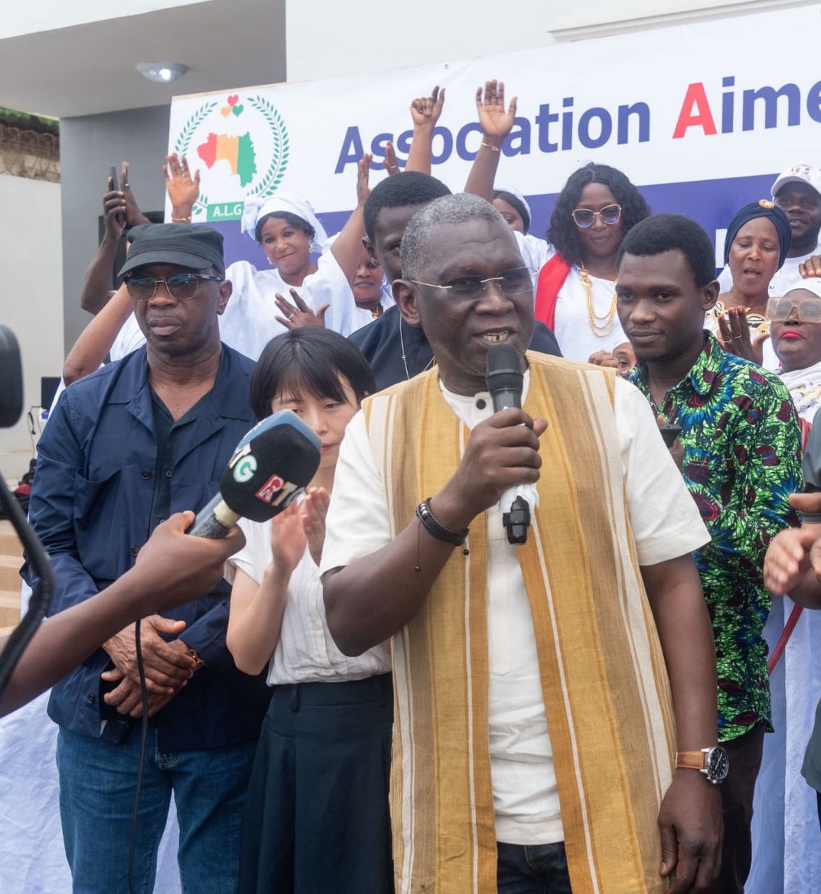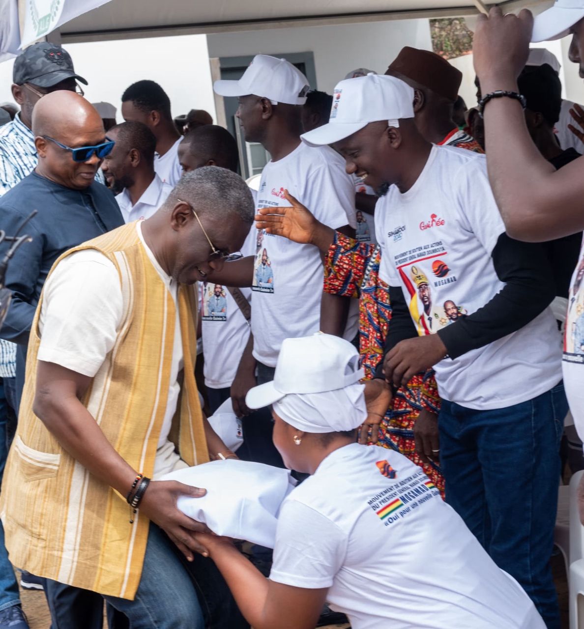« En tant qu’organisateur, c’est un sentiment de satisfaction, de joie et de beaucoup de bonheur que je ressens aujourd’hui avec la mobilisation de tous les 15 districts de Wankifong… pour venir remercier notre grand parrain, son Excellence, M. Ahmed Kanté », a déclaré Aboubacar Camara, président du MOSAMAD.
