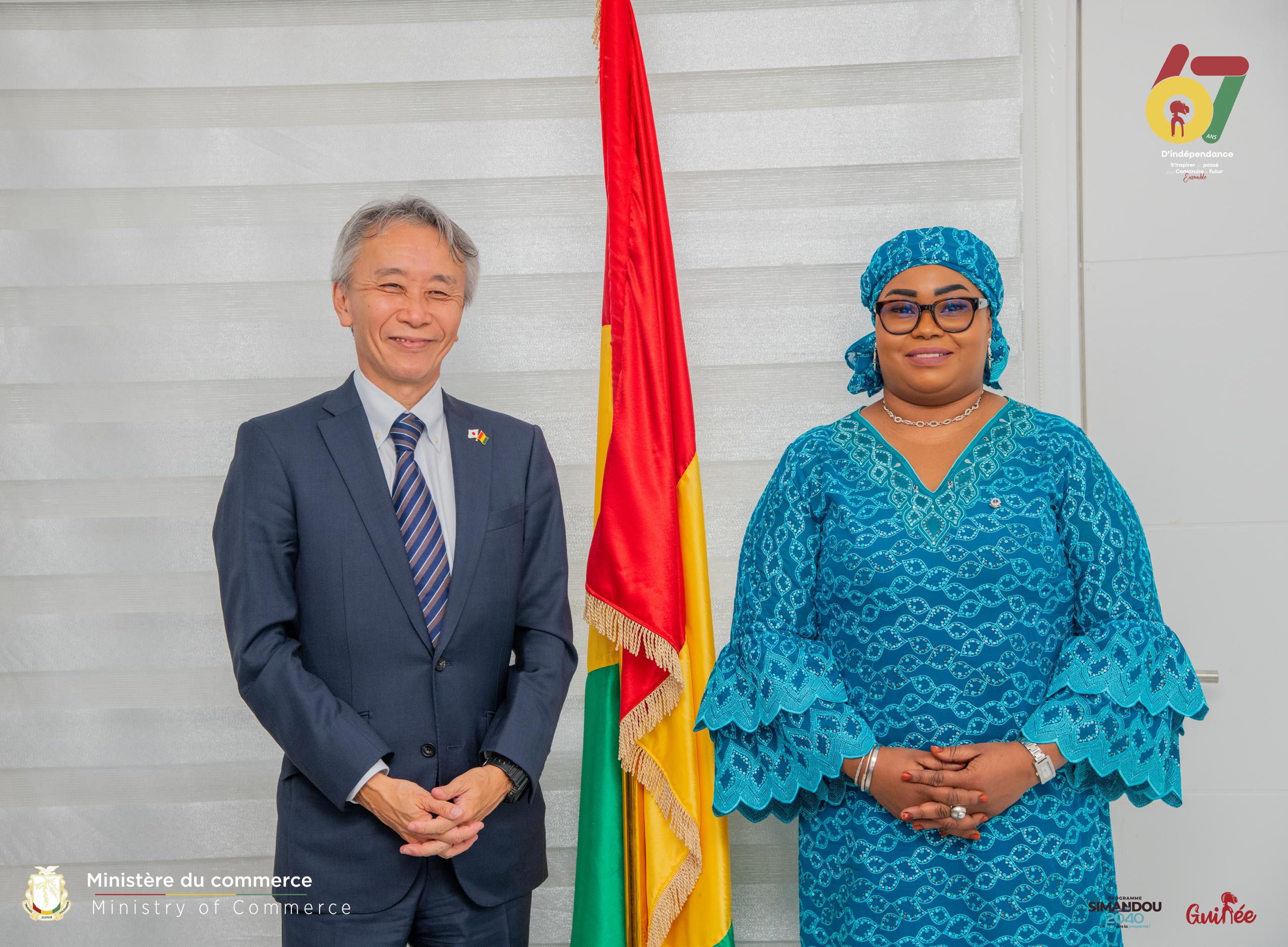 L’entretien avec S.E. Kato Ryuichi a porté sur des besoins concrets de la Guinée en matière de développement commercial. Mme Camara a sollicité l’appui du Japon pour :