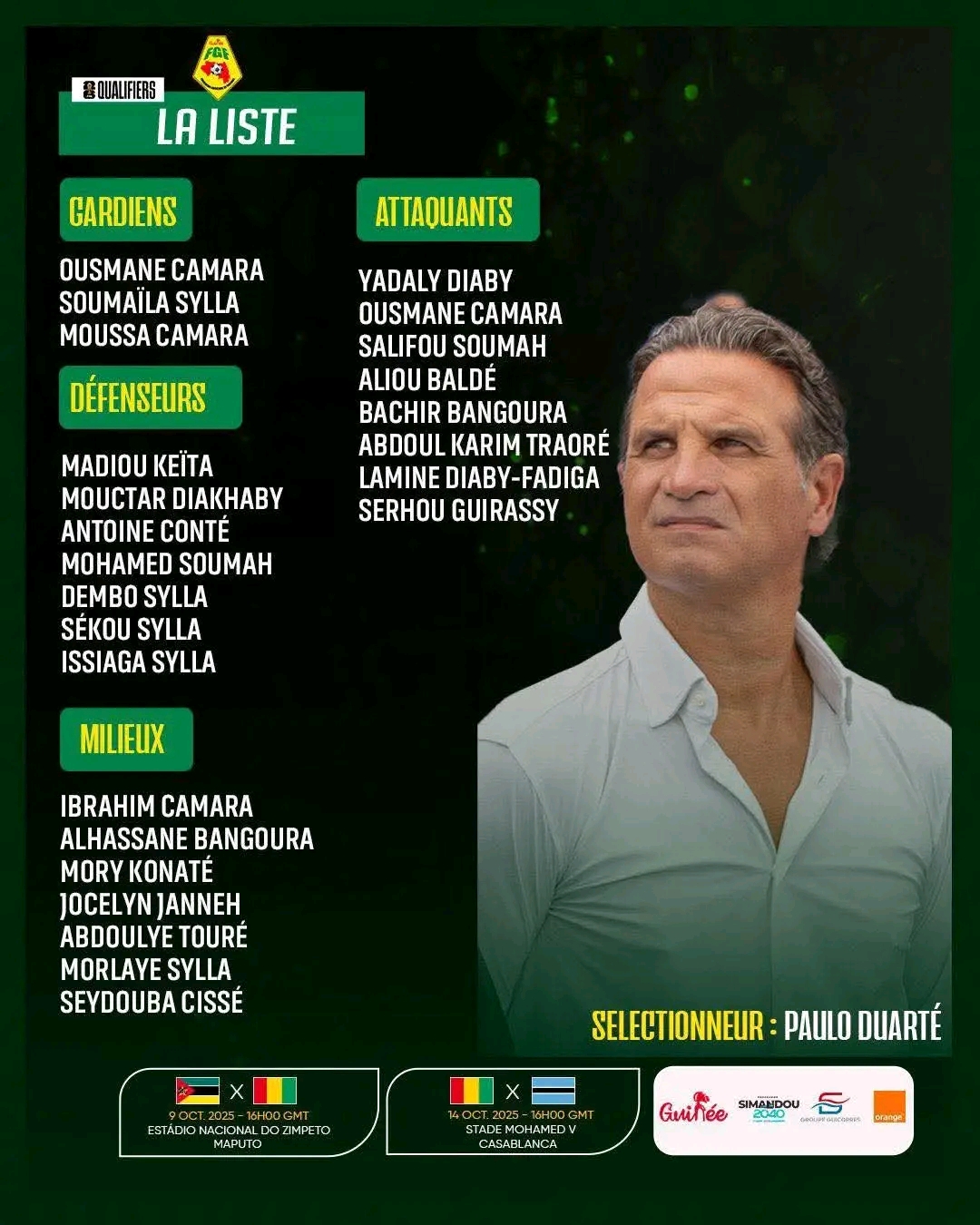 Avec cette liste audacieuse, Paulo Duarte joue clairement son va-tout. Reste à savoir si ce pari osé suffira à écrire une nouvelle page de l’histoire du football guinéen.