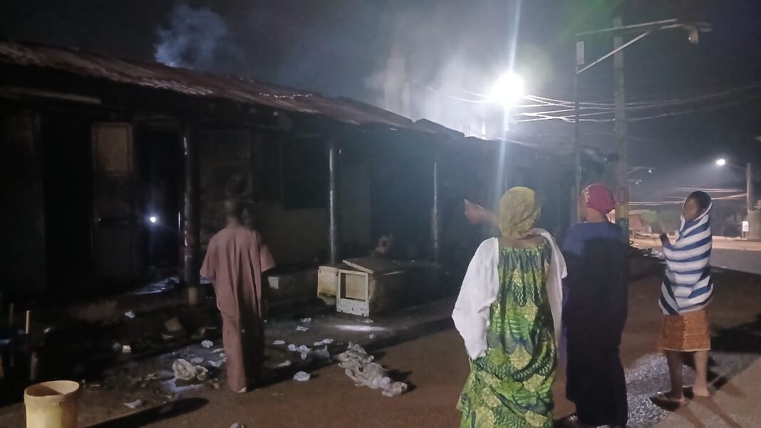 D’après les informations, le feu s’est déclaré alors que plusieurs habitants du quartier étaient encore éveillés. Les flammes se sont rapidement propagées d’un local à l’autre, détruisant une série de boutiques alignées ainsi qu’un logement composé d’une chambre et d’une douche.